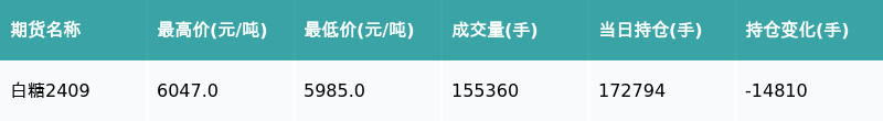 南方财经8月14日电股市配资杠杆,南财金融终端盘后期货数据显示,郑州商品交易所的白糖主力合约收跌0.45%,收盘报5987.0元/吨股市配资杠杆,日内资金流出1.34亿元。其他相关指标见下表: